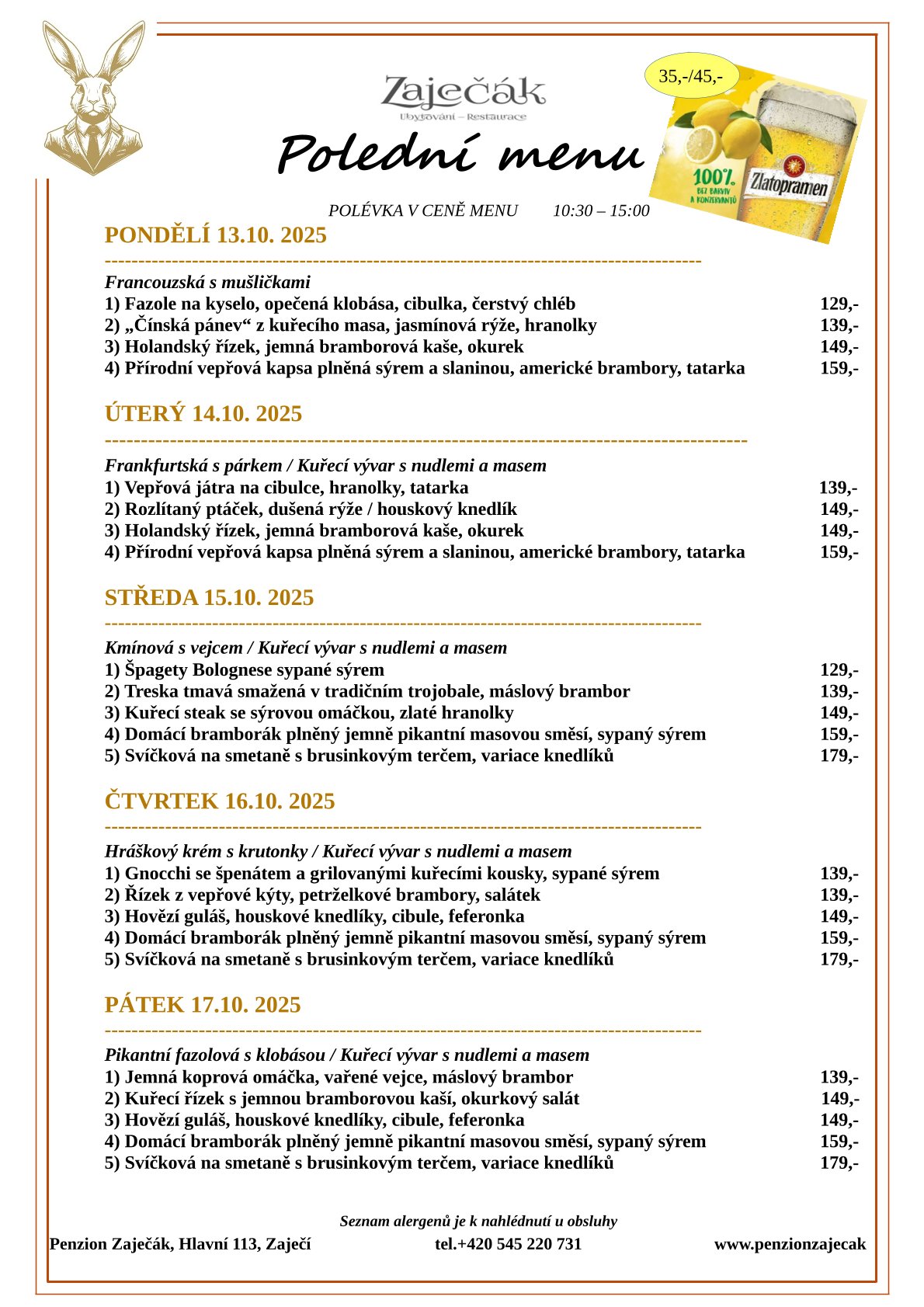 Nejen jídelní lístek, ale i denní menu a sezónní menu, které se mění den co den.